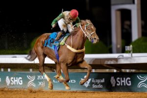وخُصّص الشوط التاسع لدعم نادي سباقات الخيل للأفراس المباعة في مزاد 2024 على مسافة 1600 متر، وبجائزة قدرها 500 ألف ريال، وحققت المركز الأول المهرة “بلو وينق” بشعار عبدالله محمد علي السماعيل، وبإشراف المدرب عبدالله السماعيل، وقيادة الخيال عبدالله الفيروز.